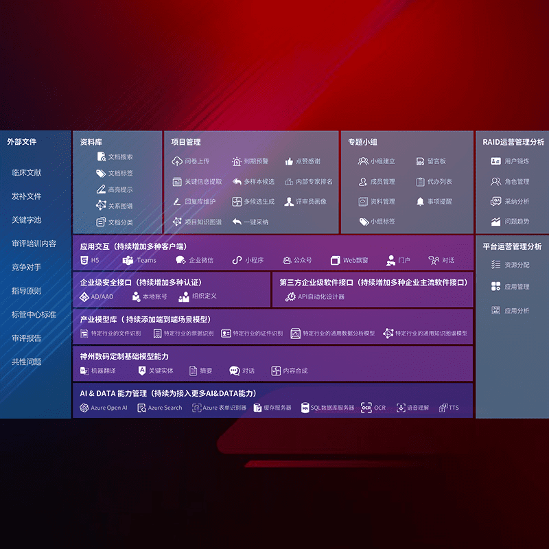 医疗器械产品上市前,,,,要熟悉严格与繁复评审标准,,,整理分析监管机构指导文件中的海量信息。。。。企业急需一个智能化解决方案,,提升知识管理效率,,,提高评审通过率,,,以提升其市场竞争力。。