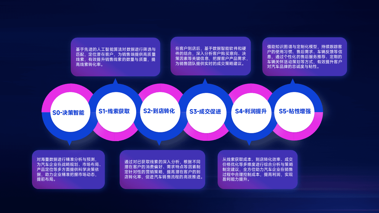 通过拓宽潜在客户来源、、、优化线索分配并提高到店转化率,,以增强销售效率。。同时,,利用线索数据不断优化分析模型,,,,有效提升转化率,,扩大营销影响力。。。